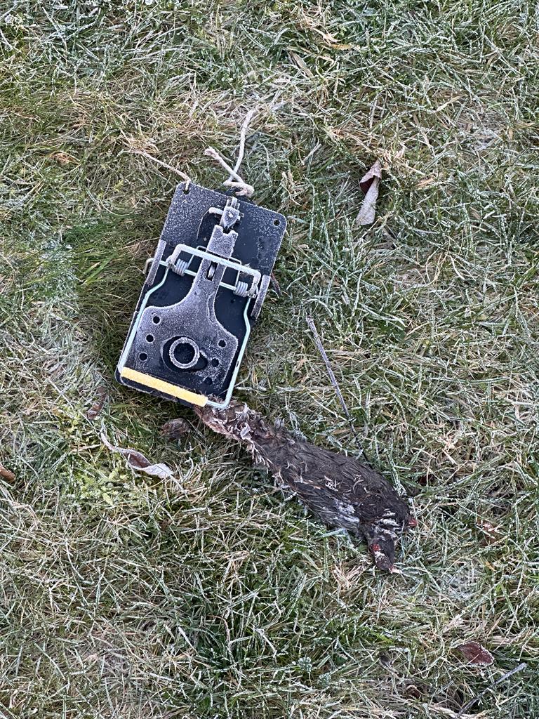 If you are the person setting traps in the garden then please desist. They are a danger to children and other animals and a hazard to the gardeners, who are not best pleased at having to remove them. You are also in contravention of the terms of your lease.